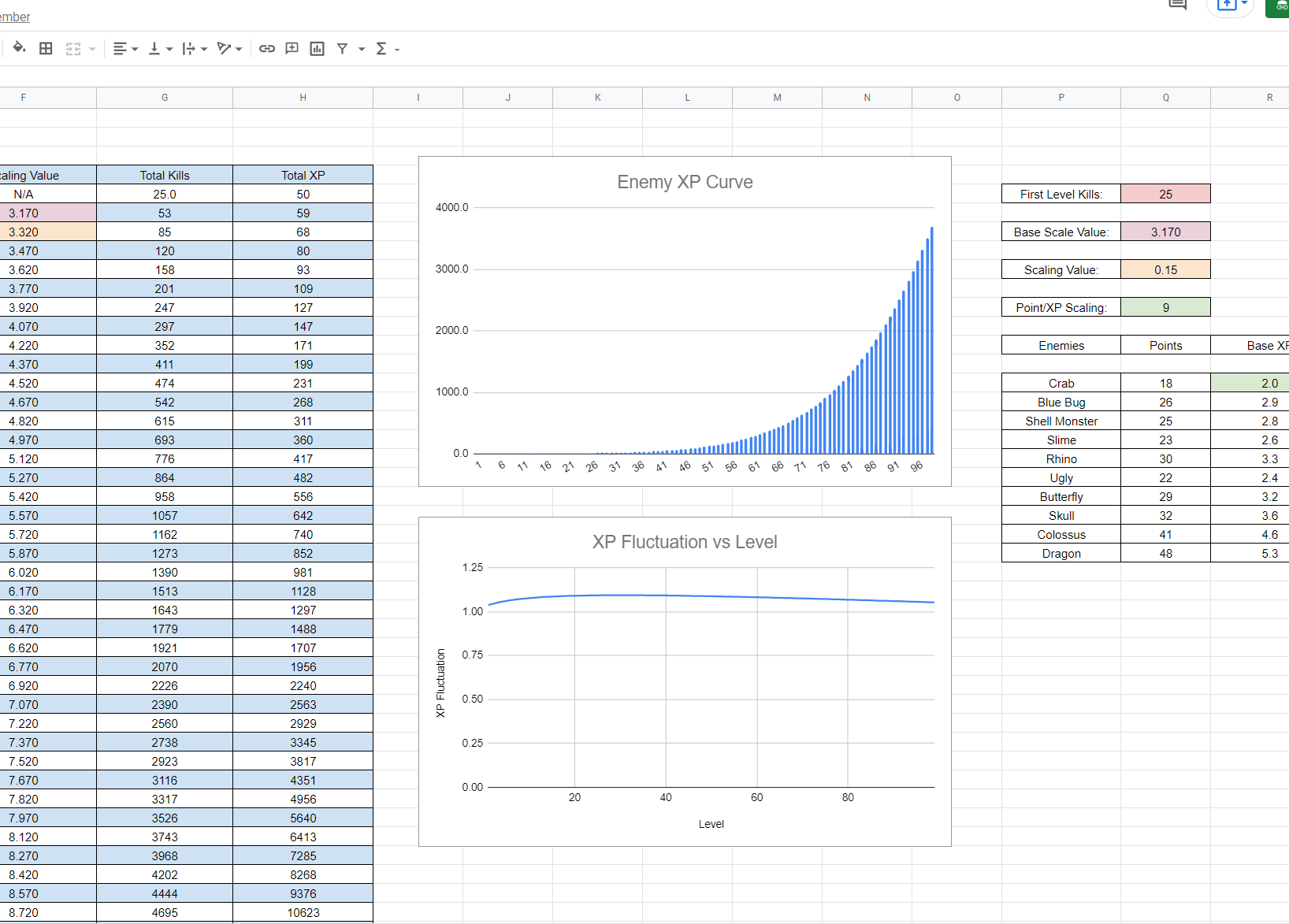 I developed a functional economy sheet with a built in tool that allows designers to fill a level with the correct amount of potential score for the player for an optimal distribution of xp, currency and difficulty. Beyond this there is a battlepass model that would support the free tier of the game, as well as a cosmetics store outline. There’s also a page of function tests if you’re interested in the logic used in the sheet.